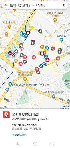 *新北耶誕城地圖*<div><br></div><div>官方的地圖很傳統又沒有GPS可以對照,所以手動把這些景點按圖示標注了一下,可能到現場會有些微誤差;</div><div><a href="https://reurl.cc/EZ5lmA" target="_blank">https://reurl.cc/EZ5lmA</a></div><div><br></div><div>如果是在fb上或是貼到line點開的連結,</div><div>使用方式:</div><div>點開連結,右上角點開選擇「以瀏覽器開啟」,</div><div>應該會跳到google map,就會出現圖例;</div><div>點圖示可以看到名稱,</div><div>按左上退回,可以自行選擇地圖底圖類型;</div><div>要關閉的話點選其中一個點,</div><div>按開「查看圖例」,點關閉</div><div><br></div><div> Mars人</div><div><br></div><div><br></div><div><img src="https://pic.pimg.tw/thaleschou/1638610346-10182941-g_n.jpg" alt=""><br></div><div><img src="https://pic.pimg.tw/thaleschou/1638610357-2011902738-g_n.jpg" alt=""><br></div><div><img src="https://pic.pimg.tw/thaleschou/1638610366-3176054954-g_n.jpg" alt=""><br></div><div><br></div><div><br></div><div>以下是官方原圖: </div><div><a href="https://christmasland.ntpc.gov.tw/map.php" target="_blank">https://christmasland.ntpc.gov.tw/map.php</a> <br></div><div><br></div><div><img src="https://pic.pimg.tw/thaleschou/1638610514-2125270333-g_n.jpg" alt=""><br></div><div><br></div><div><br></div><div><br></div><div><br></div><div><br></div><div><br></div>